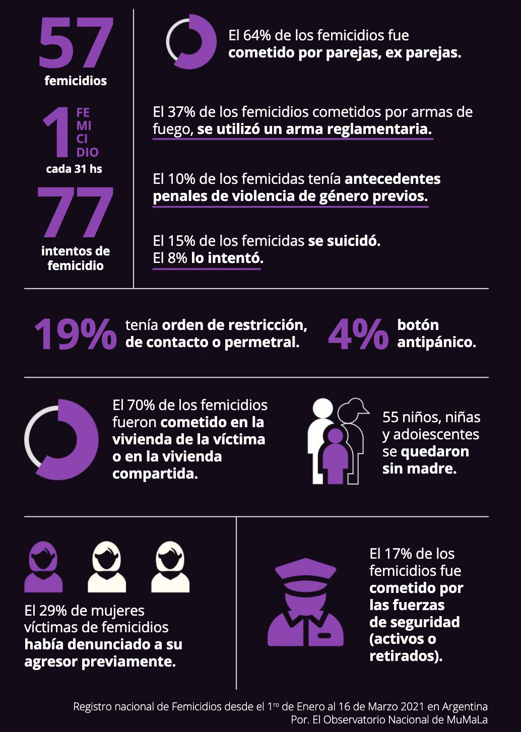 Registro nacional de Femicidios desde el 1 de Enero al 16 de Marzo 2021 en Argentina
