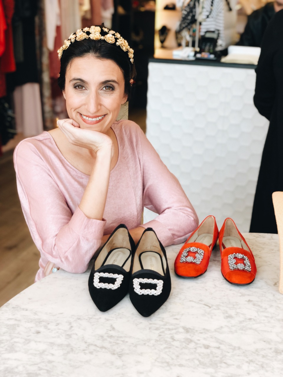 Ya hace dos años creé Aurora Alfonso, cuando nació mi tercer hija, Amelia; tenía muchas ganas de tener una conexión más manual y trabajar menos con el celular para poder crear. Fui decantando con el tiempo qué quería diseñar, sabía que tenía que tener un desarrollo comercial y potencial, así que me dedique a perfeccionarlo cada vez más y llegar a hacer no solo zapatos, sino el concepto de la marca de zapatos, no ser tradicional, seguir con el concepto de brillar y no sacar modelos por sacar temporadas, sino sacar modelos atemporales que persistan en la colección de Aurora. Como bien decís, Aurora no es una marca que se presenta por temporadas. Cada par evoluciona mucho a la marca porque es todo un desafío trabajar con herrajes. Lo difícil en la marca es innovar todo el tiempo bajo el mismo paraguas de un mismo concepto, es difícil desafiarse y mejorarse bajo esta premisa de `chatitas de cuero bajo detalles protagonistas´ sin seguir tendencias, ya que Aurora no tiene que ver con eso. Cada lanzamiento es un desafío cada vez más importante.